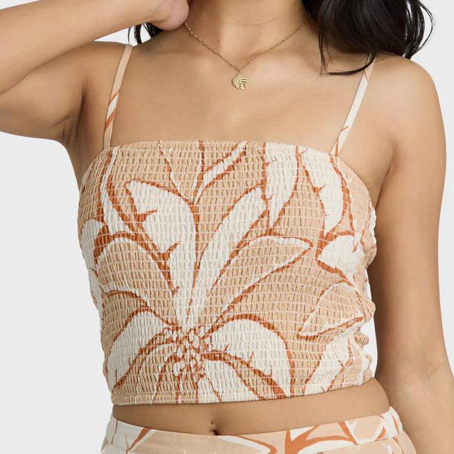 O Top sem mangas Tropic Breeze Woven Tank recria o estilo das ilhas com um toque sofisticado. A silhueta justa e curta apresenta um corpete franzido que realça a figura e um tecido texturado com fios irregulares que é tão agradável ao toque quanto bonito.