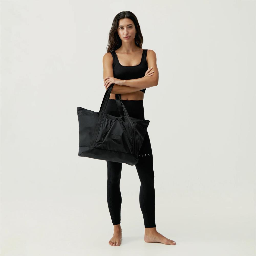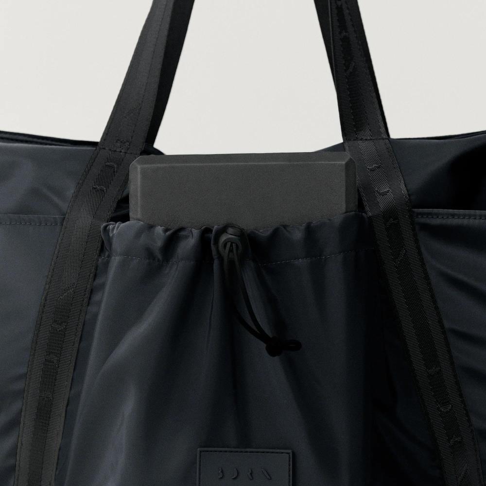Saco de grande capacidade, com 6 bolsos exteriores, um com ajuste elástico para guardar o bloco de ioga ou qualquer outro item, 4 bolsos de acesso rápido e um com fecho. 3 bolsos interiores.