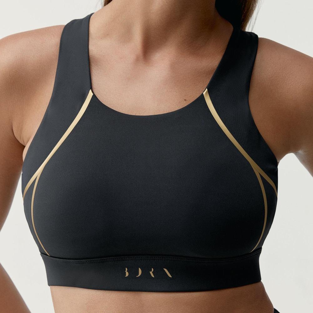 Top desportivo. Largura das costas ajustável para maior adaptabilidade ao contorno. Design com fita selada a quente «Gold». Tecido «Shape_Tech» compacto e leve para maior apoio nos seus movimentos. Inclui copas removíveis.