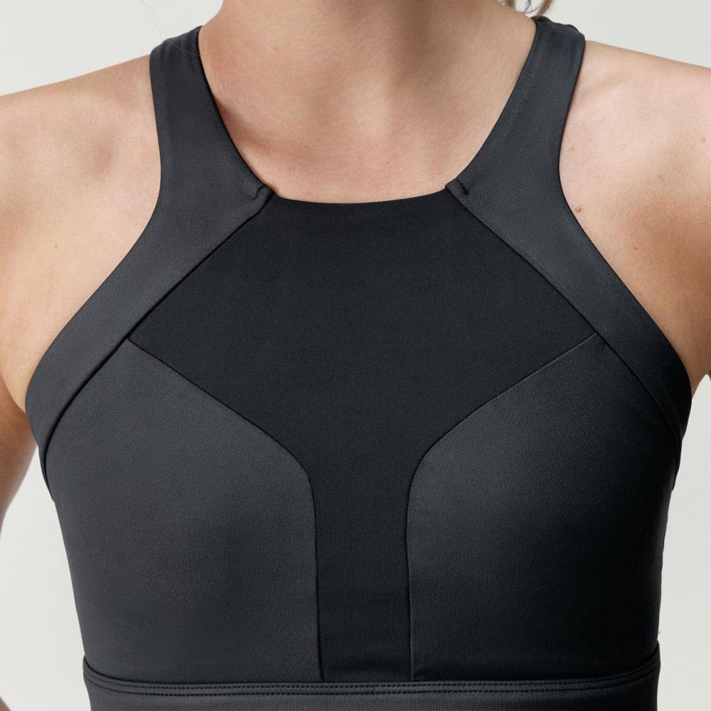 Desempenho superior, suporte médio-alto. Tecido Shape_Tech. Design elegante combinado com tecido com acabamento acetinado. Costas desportivas que permitem qualquer movimento.