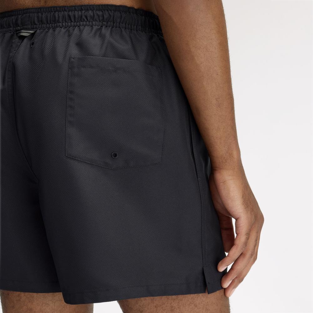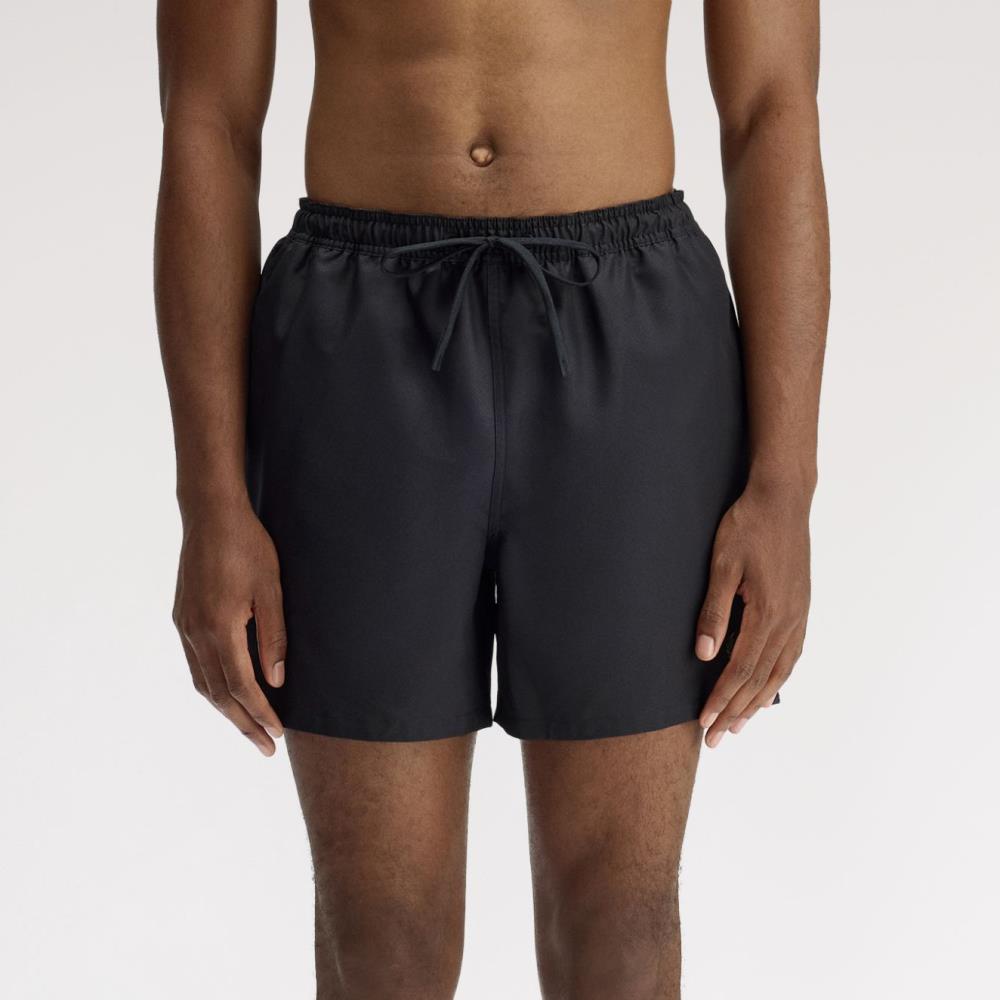 Os calções de banho com revestimento reciclado, finalizados com a coroa de louros bordada na perna esquerda: