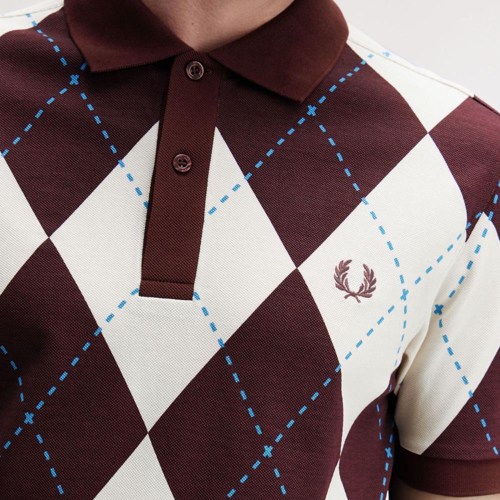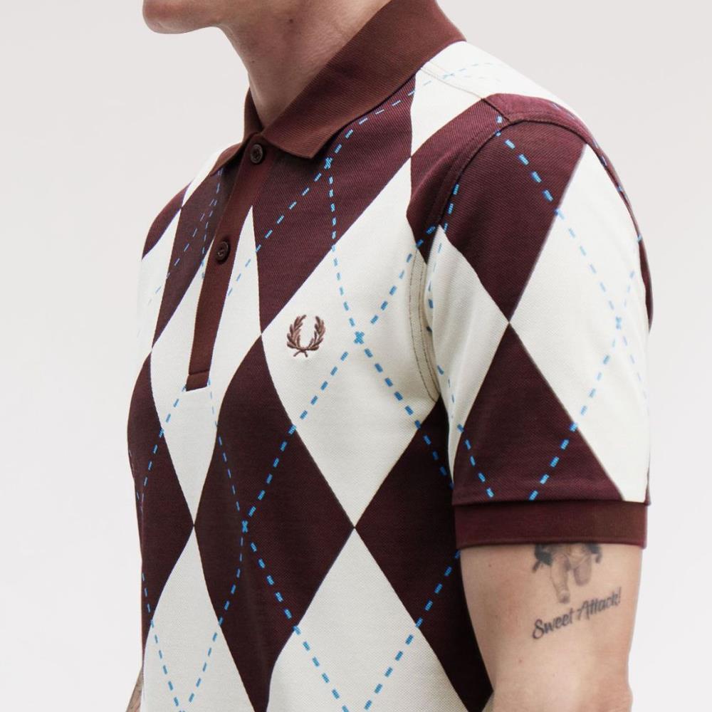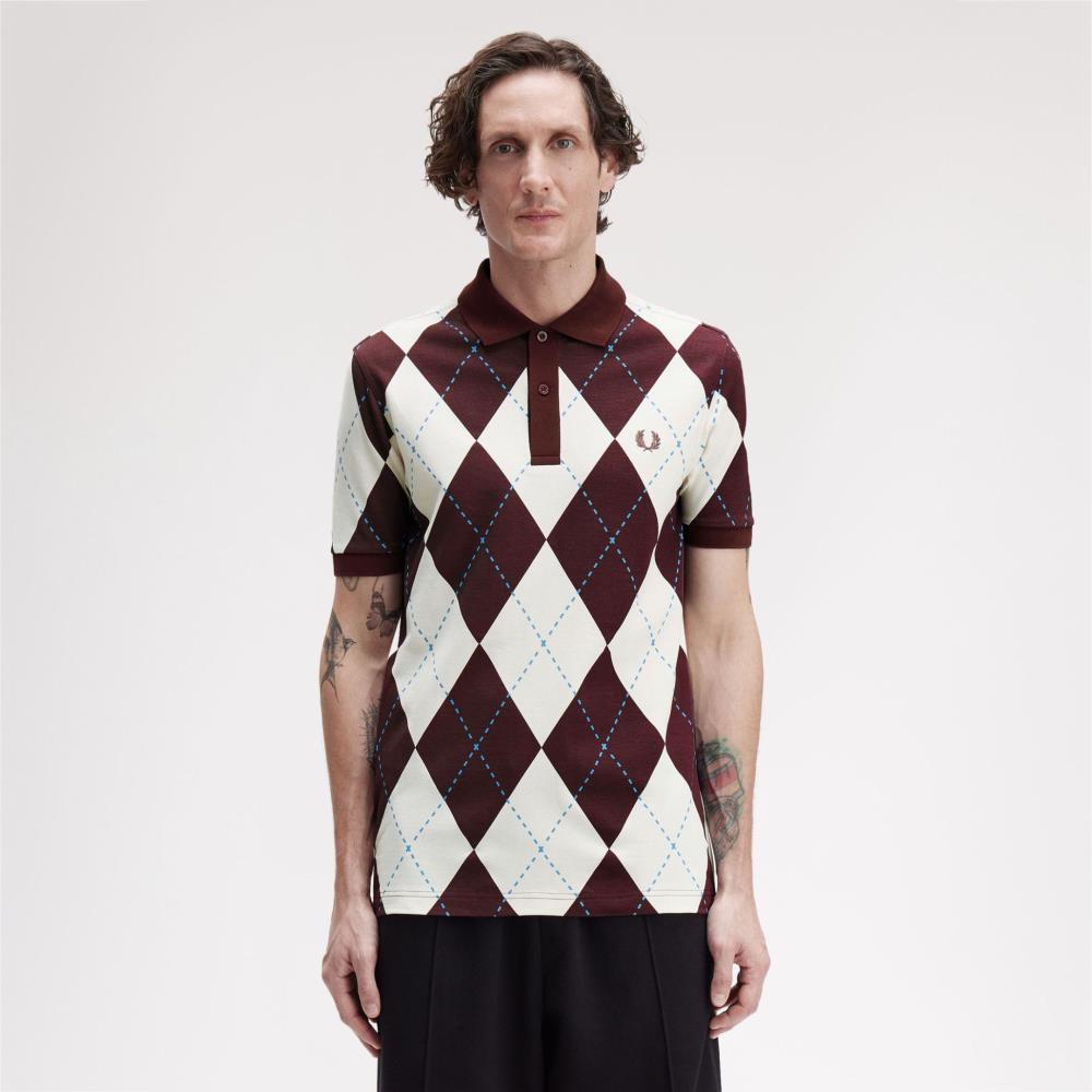 Polo em piqué de algodão, confeccionada com um padrão Argyle em toda a peça.