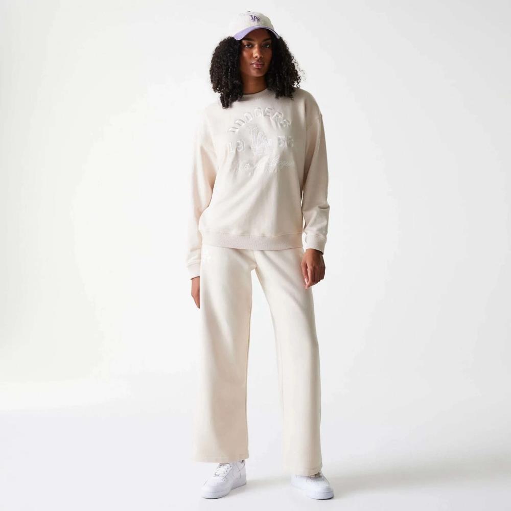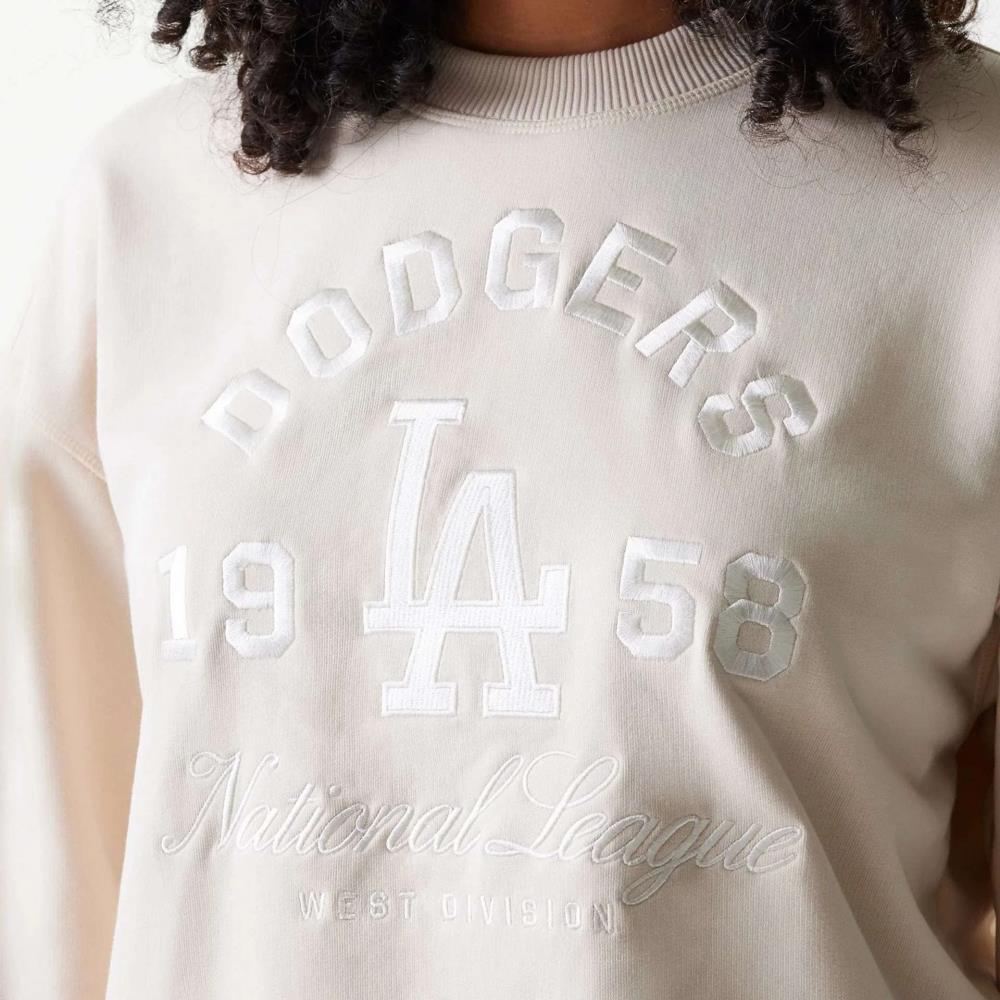• Camisola feminina MLB Tonal Graphic LA Dodgers bege claro com gola redonda oversized