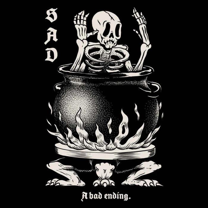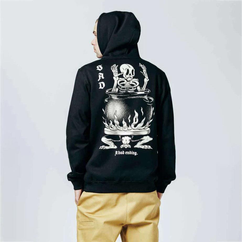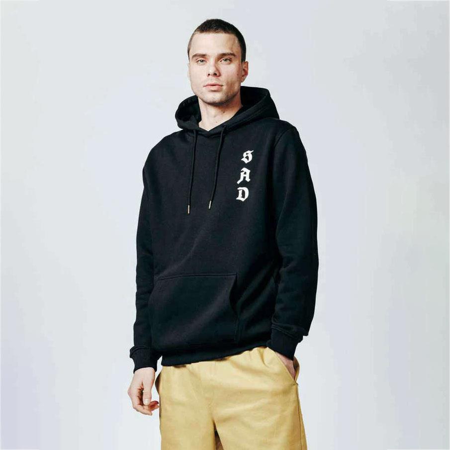Camisola com capuz clássica preta premium com arte SAD de mcbess.