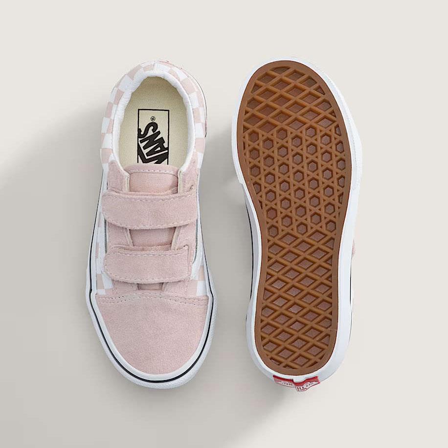 O Kids Old Skool V Checkerboard reinventa o nosso icónico sapato Sidestripe, trocando os atacadores tradicionais por fechos duplos de velcro. Fabricado com parte superior em camurça e lona, este modelo de cano baixo mantém o seu apelo clássico, proporcionando um ajuste fácil e seguro que manterá o seu filho confortável durante todo o dia.